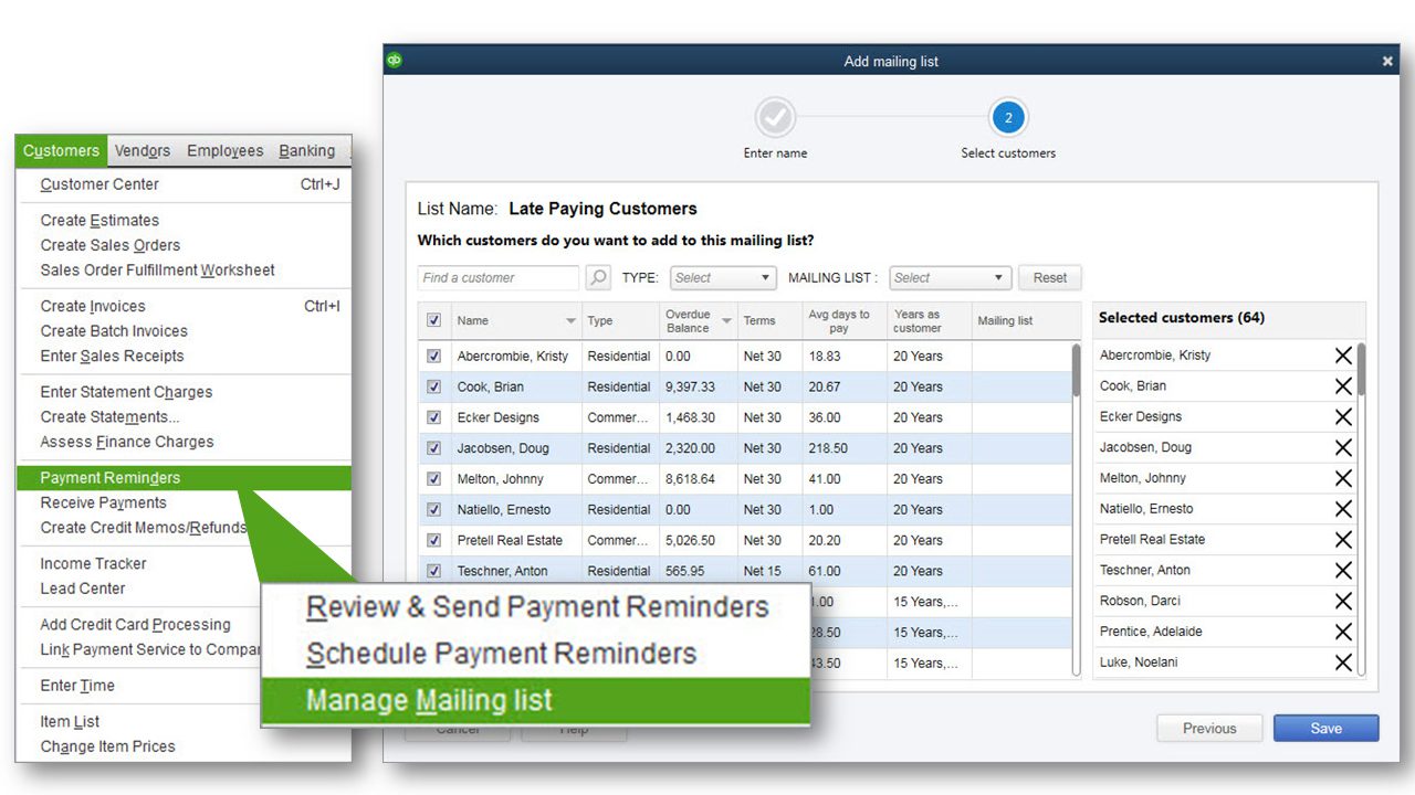 Features: Schedule the task of reminding customers of open accounts receivable balances. Getting paid on time is critical for the small business. Manually following up on delinquent payers can be time consuming. With this new feature, users can: