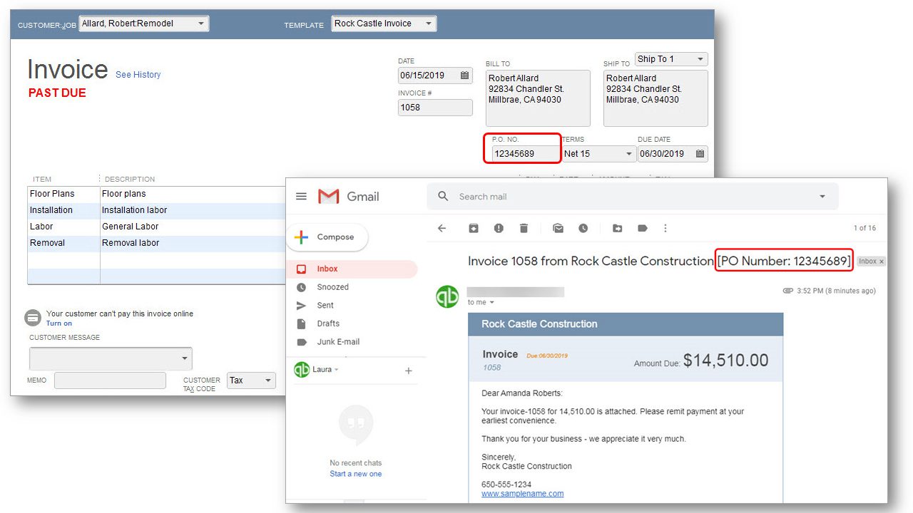 Features: Modify the email template for customer invoices to include the Customer’s purchase order number in the subject line. Facilitate faster payment by the customer by simplifying the purchase order number lookup process when they receive emailed Invoices from within QuickBooks.